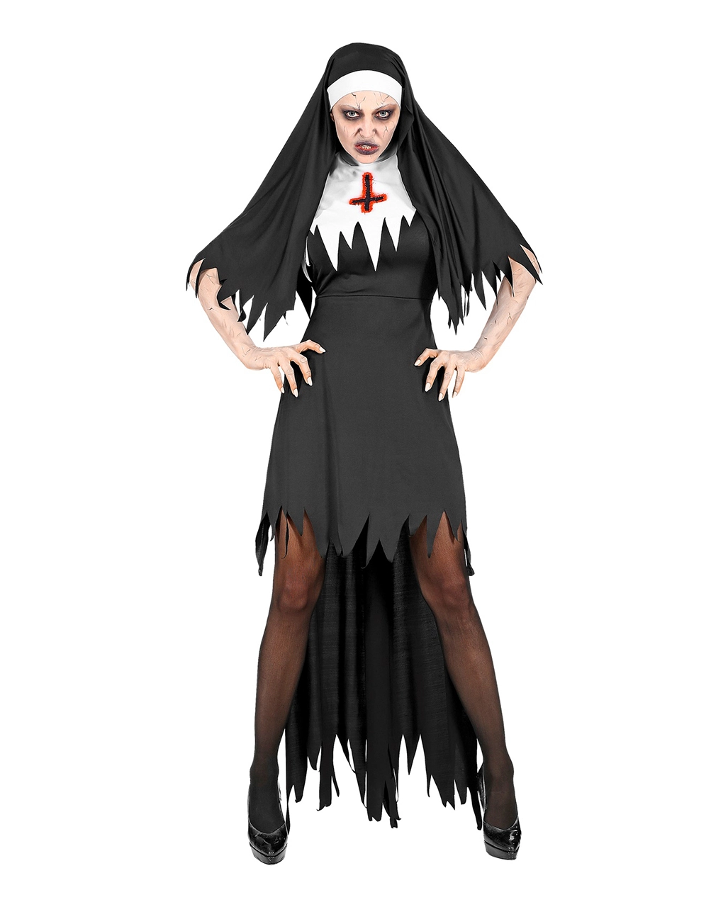 Lieferumfang: 1 x Dämonische Nonne Damenkostüm mit Haube