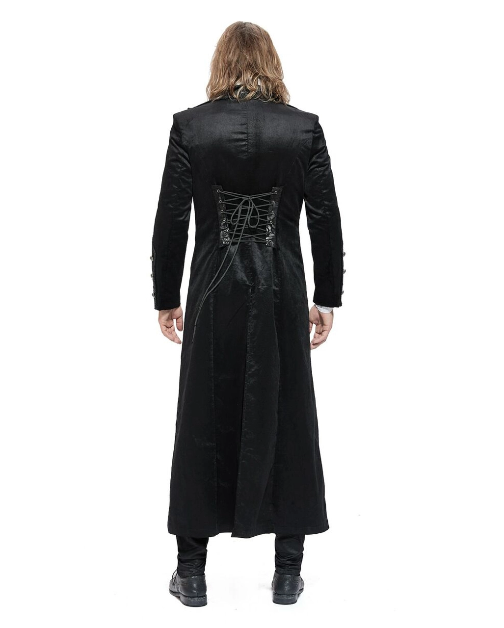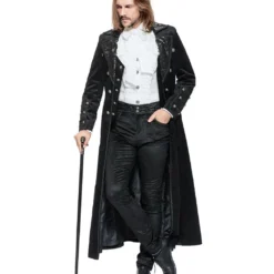 Schwarzer langer Mantel im Gothic Style aus Samt