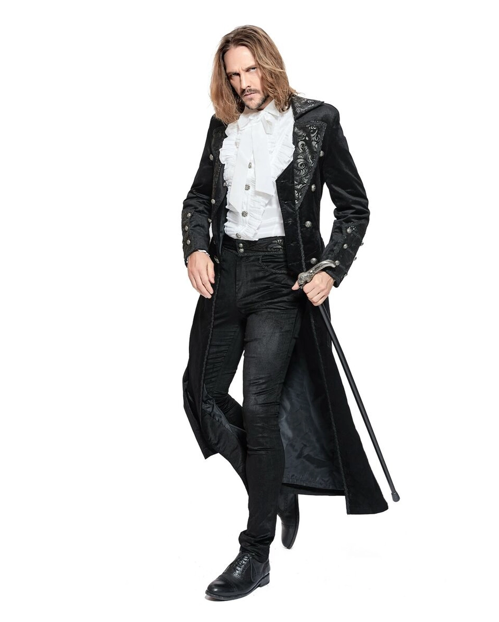 Unser langer Gothic-Samtmantel für Herren ist ein echter Hingucker, der sich für edle, düstere Herrenkostüme eignet. Der Mantel verfügt über einen Kunstlederkragen und eine Schnürung auf der Rückseite. Mit einem Knopf auf der Vorderseite lässt er sich schließen. Dieser schwarze, lange Gothic Mantel ist für Männer in Größe S bis 3XL verfügbar. Bestelle passend dazu Viktorianischer Gothic Aristokrat Herren Mantel