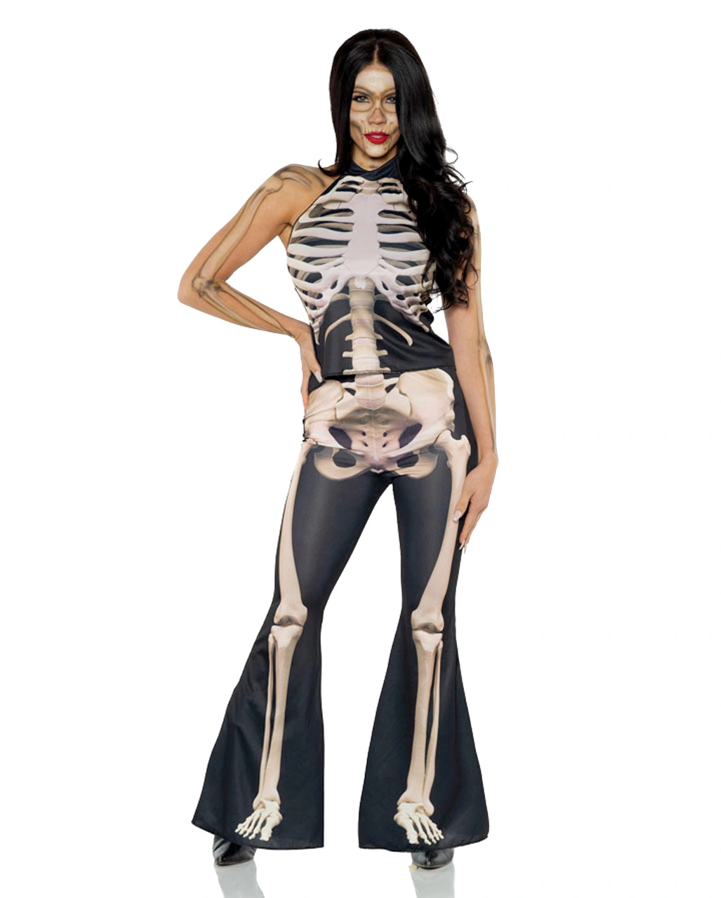 Skeleton Neckholder Top & Knochen Schlaghose für Halloween
