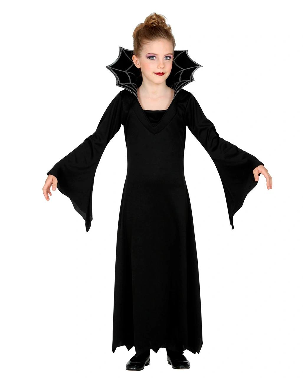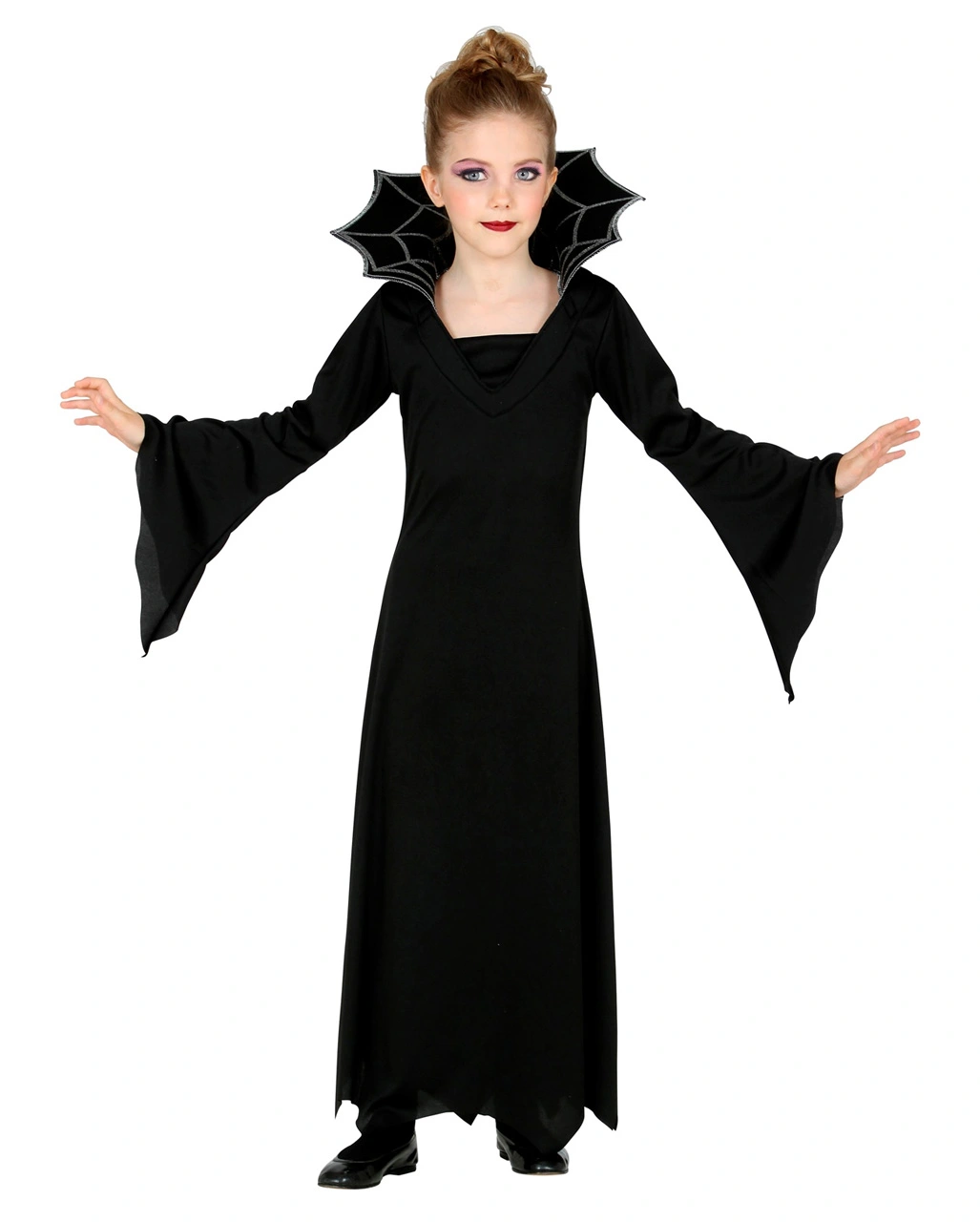 Unser Spiderella Prinzessin Kinderkostüm ist eine eindrucksvolle Verkleidung, mit der eure Tochter an Halloween und Fasching für Aufsehen sorgt. Das nachtschwarze Kostümkleid ist knöchellang und begeistert mit aufwendigen Details, wie dem Stehkragen mit Spinnennetz Muster und den weiten Trompetenärmeln. Passend dazu findet ihr bei uns im Shop eine riesen Auswahl an Kostüm Accessoires wie die Krabbelnde Spinnen Aufklebe-Tattoos oder die Spinnen Haarspangen 3er Set für einen schrecklich schönen Gesamteindruck.