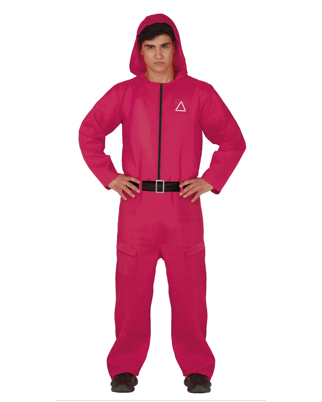 Das Squid Game Kostüm Aufseher ist für Erwachsene in M und L-Größe erhältlich. Er besteht aus reinem Polyester, liegt weich auf der Haut und fühlt sich sehr leicht an. Am roten Wärter Overall befindet sich eine Kapuze. Kombiniere die Squid Game Verkleidung mit der Squid Maske Dreieck Deluxe. Fertig ist dein markanter Wärter-Look!