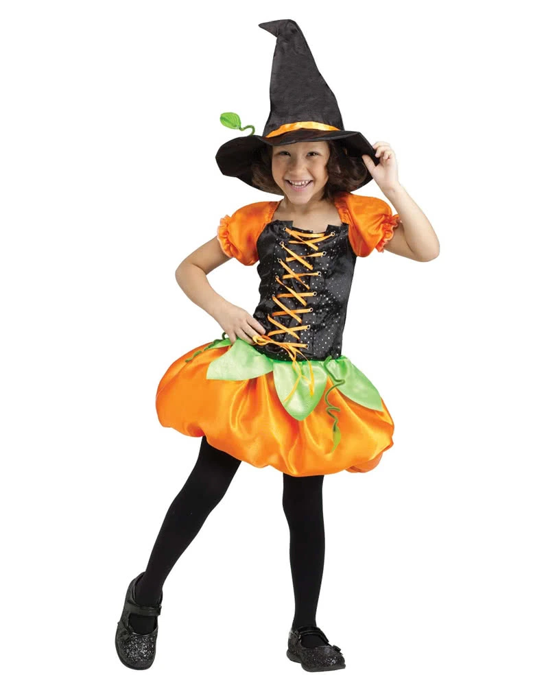 Niedliches Hexenkostüm für junge Mädchen im Kürbis-Look