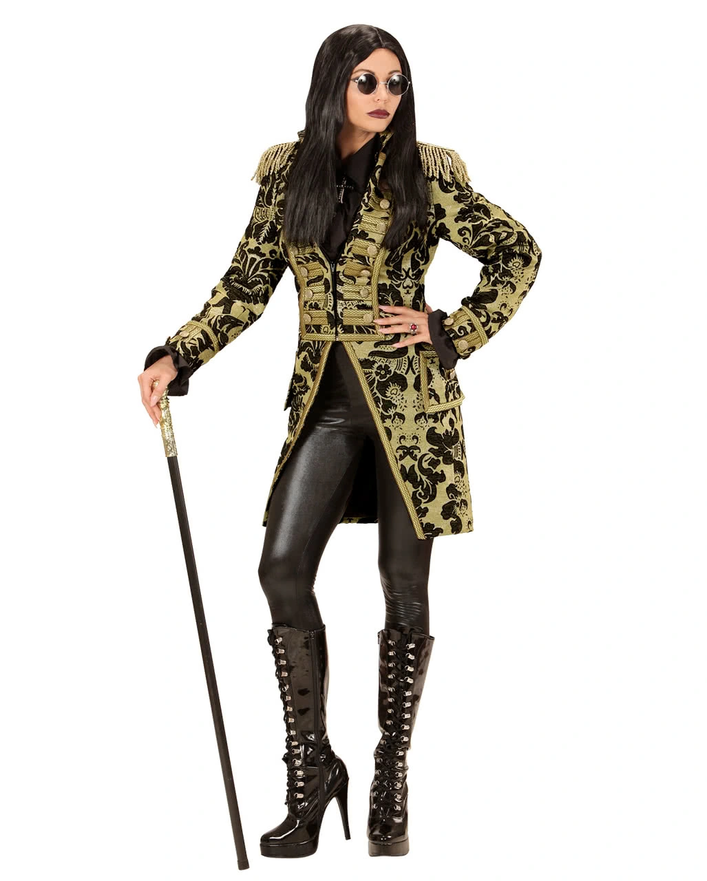 Der golden-schwarze venezianische Damenfrack ist aus schwerem Stoff gearbeitet und besitzt ein wunderschönes florales Muster aus goldener Stickerei auf schwarzem Stoff. Die Verzierung aus Goldborte sowie die Metallknöpfe ergeben zusammen mit den Schulterklappen und deren Fransen einen eleganten Look. Optisch erinnert der Parade-Tailcoat sofort an schwere Brokatmäntel und eignet sich daher perfekt für Figuren aus der Zeit des Barock und Rokoko. Mittels eines geschickt versteckten Reißverschlusses kannst du deinen Brokat Frack schließen. Dank eines taillierten Schnittes wirkt der Piraten Frack keinesfalls sackig. Dazu passen ein Edler Musketierhut und Piraten Damen Stiefel.