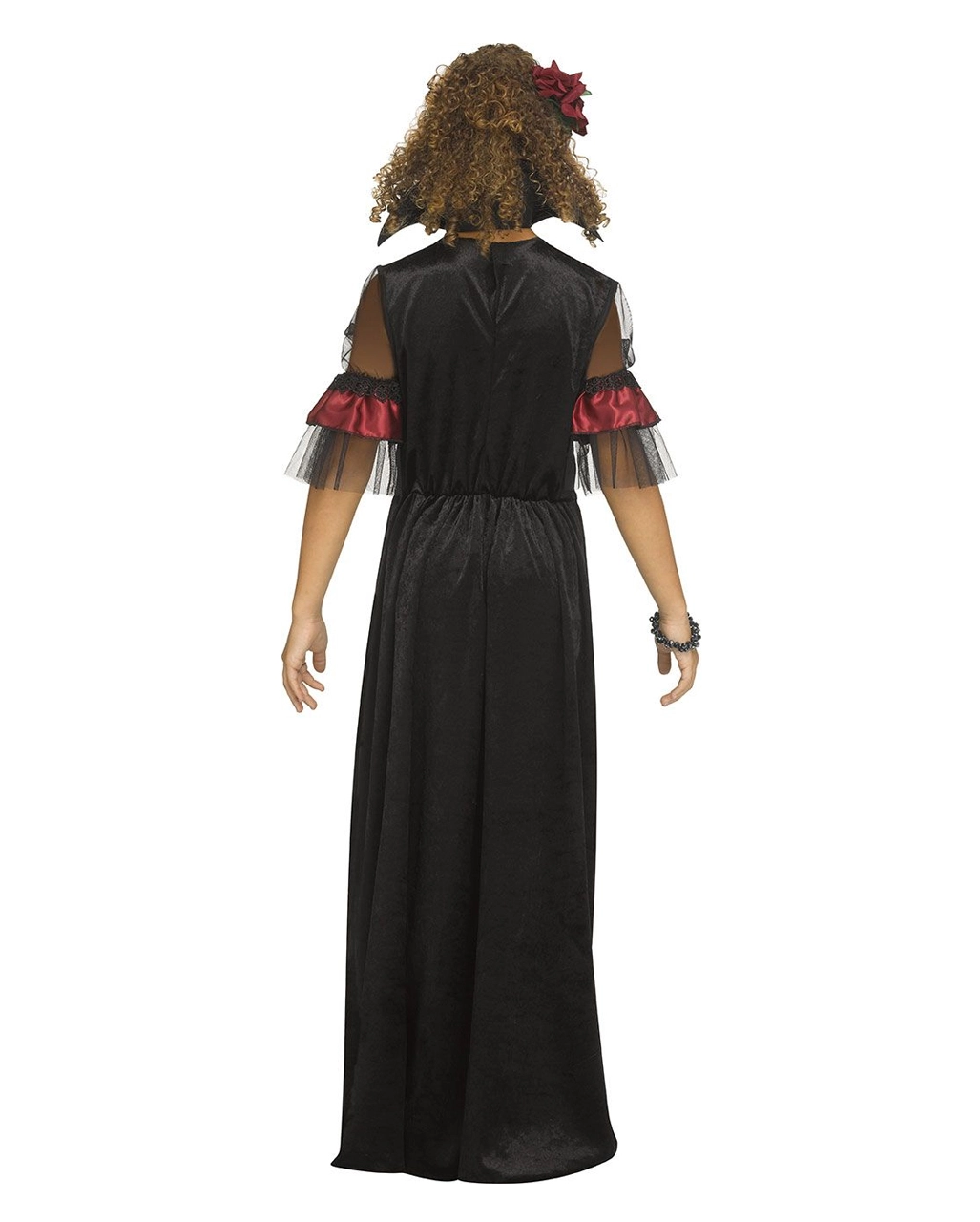 Unser viktorianisches Vampir Kinder Kostüm ist die perfekte Gruselverkleidung für kleine Blutsauger. Das elegante Vampir Kostüm für Mädchen macht aus deinem Schatz eine anmutige Schönheit, vor der man sich lieber in Acht nehmen sollte. Die anderen Partygäste werden sie ganz sicher als ihre Königin anerkennen, und gemeinsam mit ihr auf die Jagd nach Süßigkeiten gehen. Das schwarz-rote Kinder Vampir Kostümkleid besticht mit Tüll- und Rüschen-Details an den Ärmeln. Du kannst hierzu wahlweise Kopfschmuck und ein gruseliges Make-up dazu bestellen. Auch dieses findest du hier bei uns im Shop.